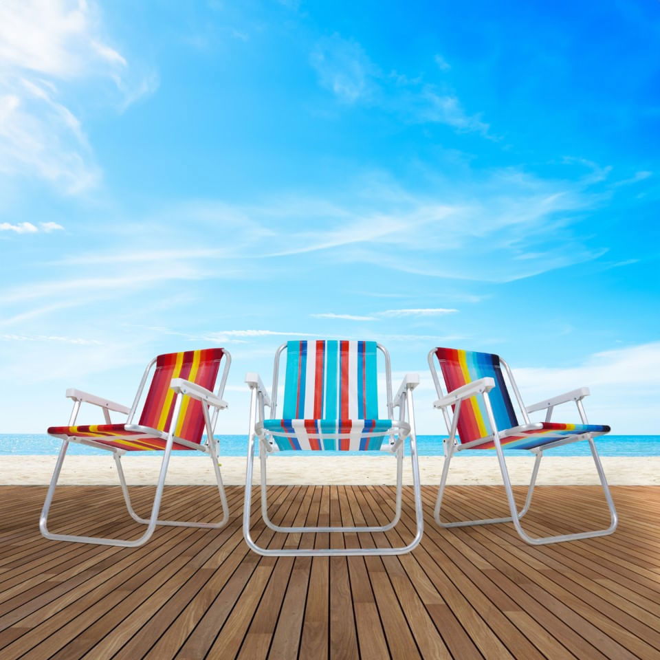 Silla plegable de aluminio BELL rayas celeste amarillo y rojo