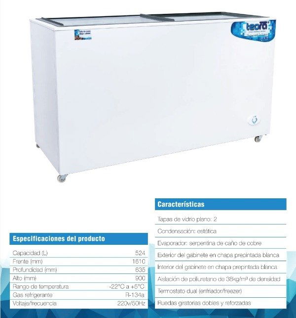 Freezer Horizontal con Puertas de Vidrio TEORA FH550TV