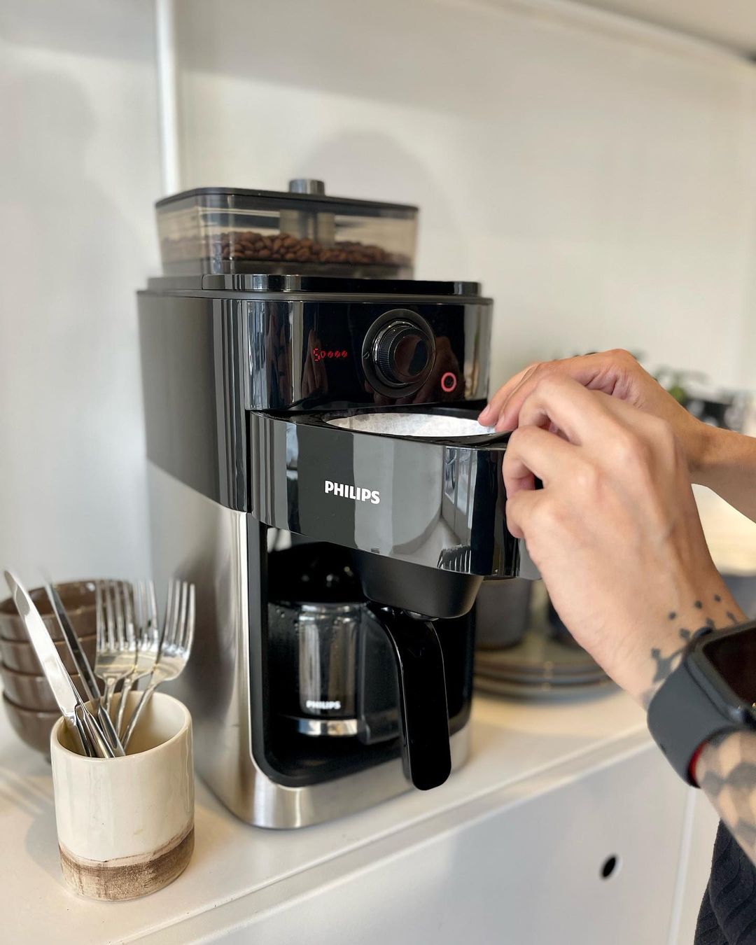 Disfrute de un gran café hecho a partir granos recién molidos con la cafetera Philips Grind & Brew con molinillo integrado.