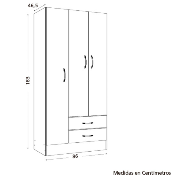 Placard 3 puertas 2 cajones Ricchezze Tana plus