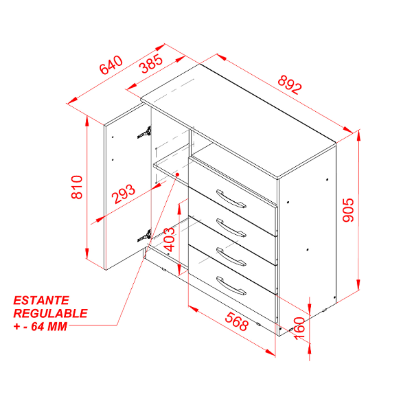 La CÓMODA SÚPER EXPRESS 4 CAJONES Y 1 PUERTA
