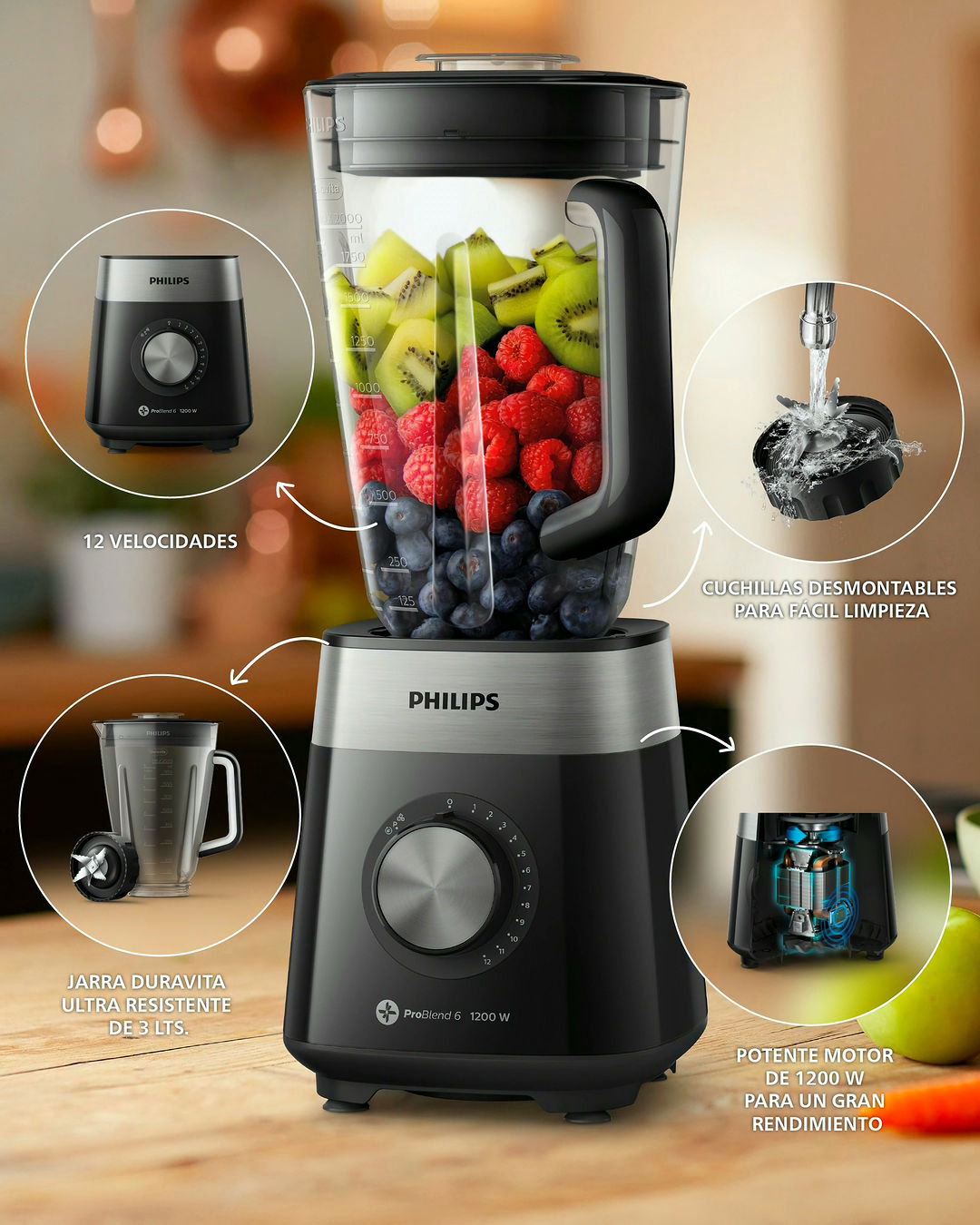 LICUADORA PHILIPS Potente, resistente y fácil de limpiar