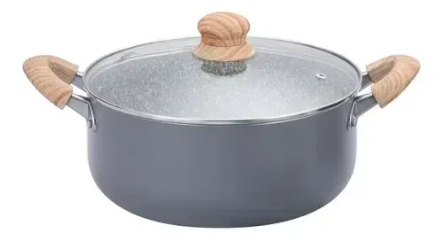 - Material: Cuerpo de Aluminio con Antiadherente Cerámico - Asas Siliconadas Símil Madera - Tapa de vidrio
