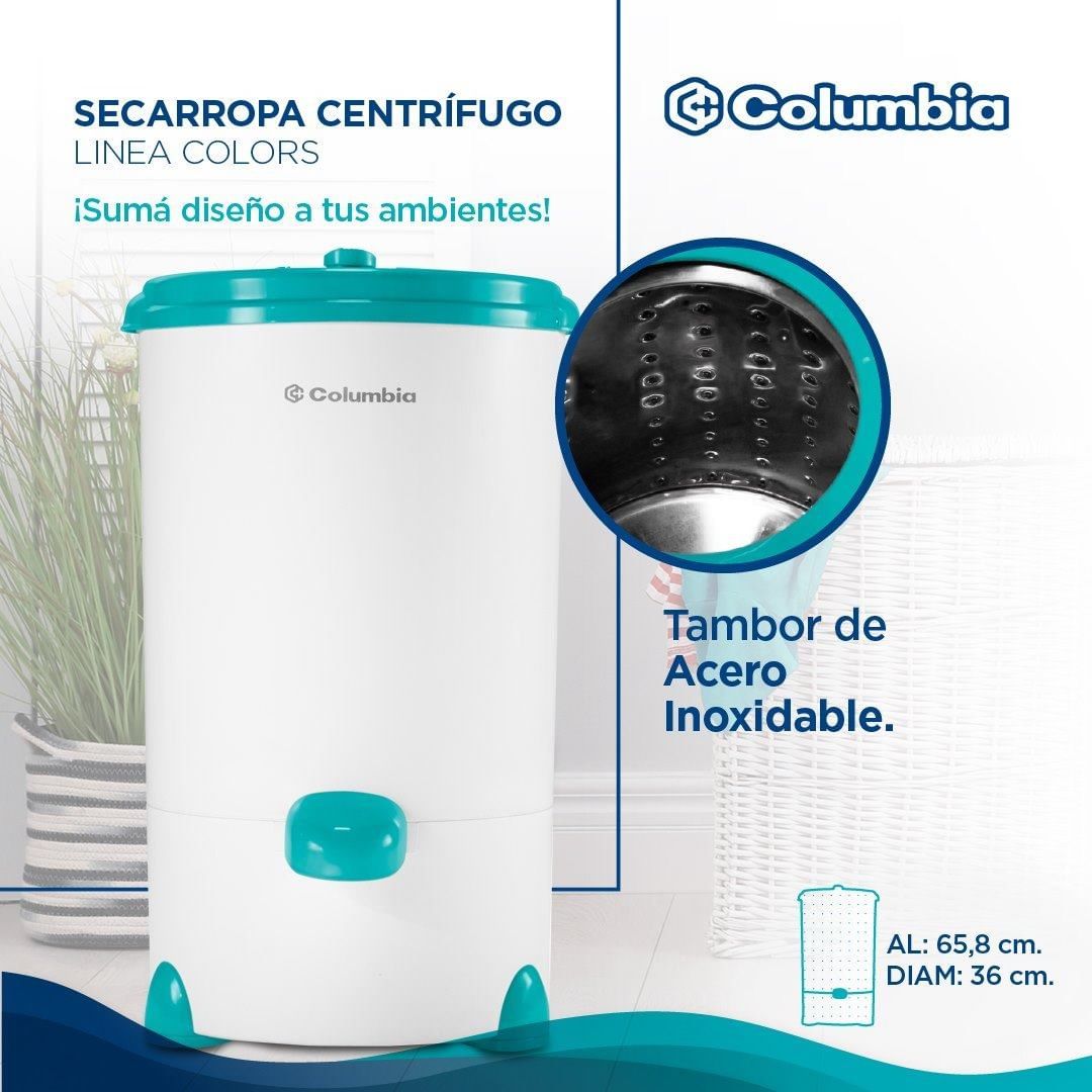 Secarropas Centrífugo LINEA COLORS 5,5kg de capacidad. Turquesa Océano. HTS 5503