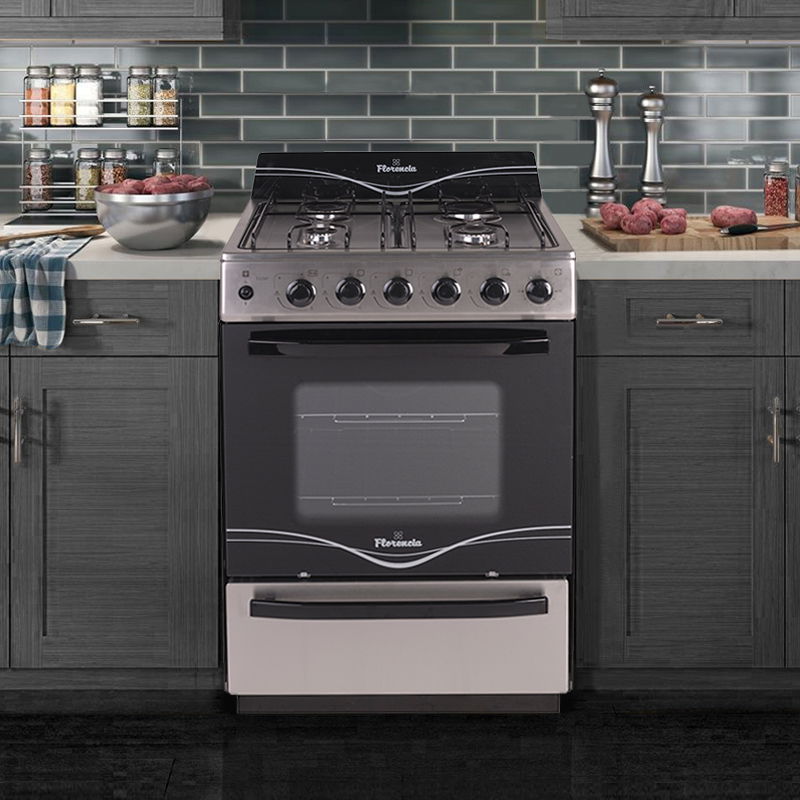 - La cocina Florencia 5538F tiene un diseño clásico que cuenta con cuatro hornallas y horno.