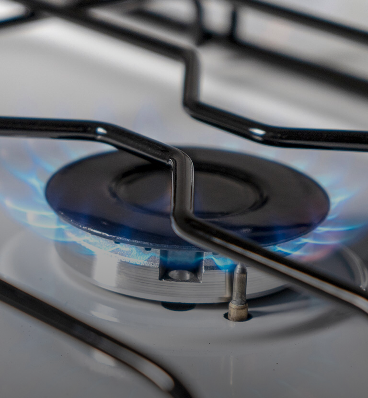 - La cocina posee un diseño clásico en color blanco que cuenta con cuatro hornallas y horno. Dispone de 1 quemador grande, 2 medianos y 1 chico y todos tienen válvulas de seguridad que cortan el suministro de gas, si por alguna razón se apagan las llamas. Incorpora, a su vez, rejillas anti vuelco enlozadas.
