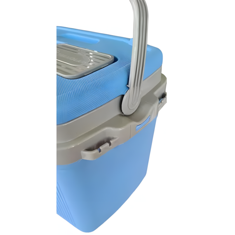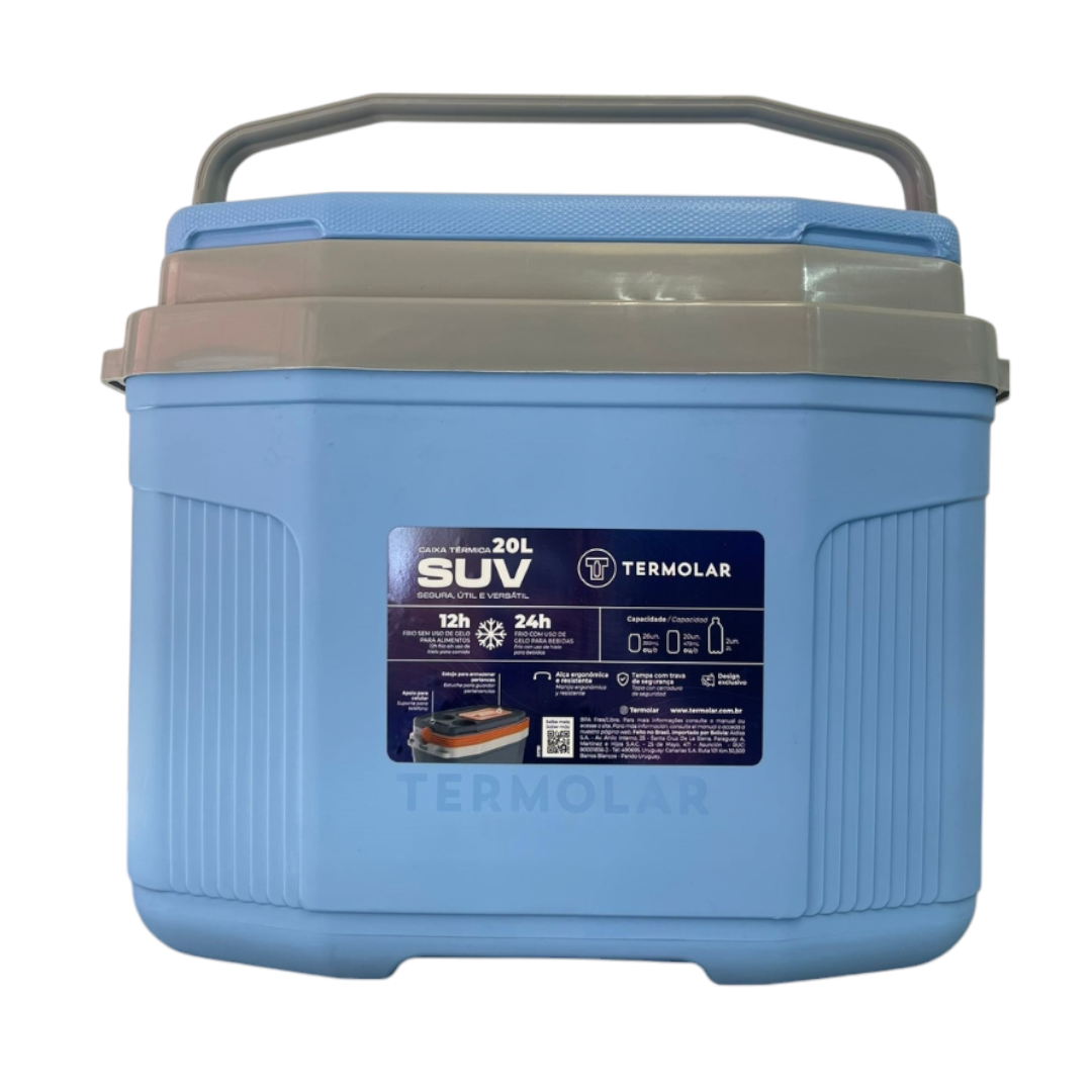 Su asa reforzada proporciona seguridad para el transporte, la tapa cuenta con asas superior e inferior, permitiendo abrirla con una sola mano, su conservación térmica es efectiva: hasta 12 horas sin hielo y 24 horas con hielo, gracias al aislamiento térmico de poliestireno expandido y su material externo de plástico resistente.