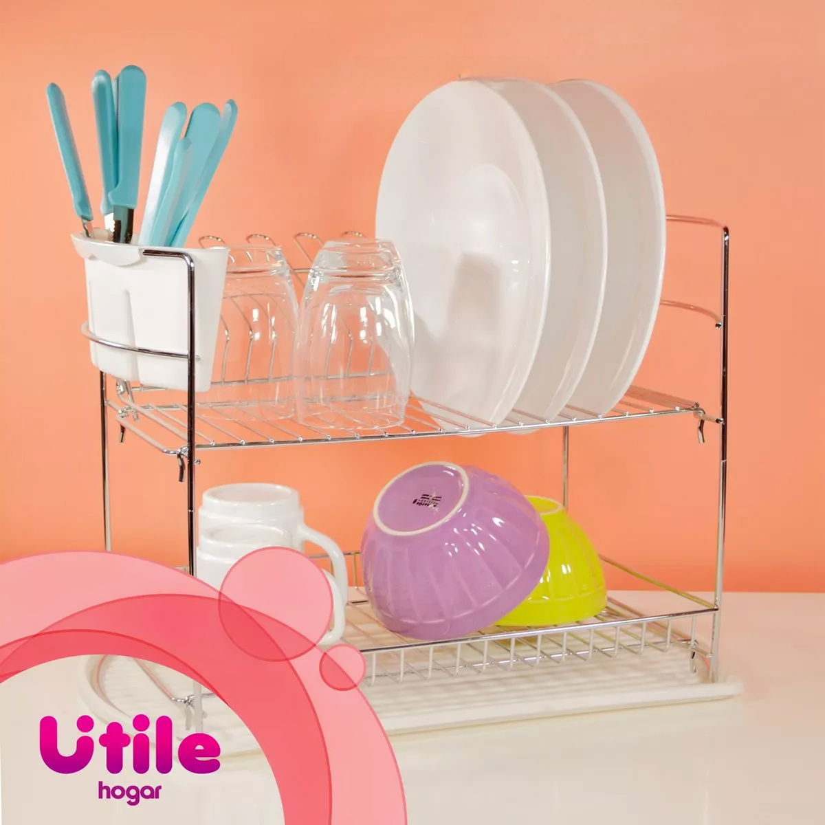 Escurridor de platos 2 niveles con bandeja