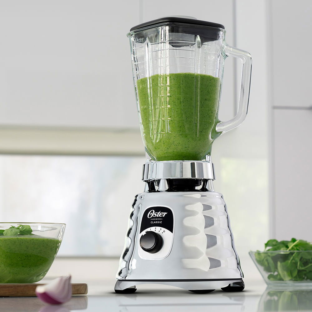 Las icónicas licuadoras Oster® son sinónimo de eficiencia y durabilidad. Y ahora, el nuevo diseño moderno de la espectacular licuadora clásica Oster® en cromo reinventada y modernizada con perilla ergonómica de tres velocidades, te brinda una mejor experiencia gracias a su motor seis veces más duradero, su novedoso diseño y sus controles ergonómicos. ¡Y estas son tan solo algunas de sus muchas otras ventajas!