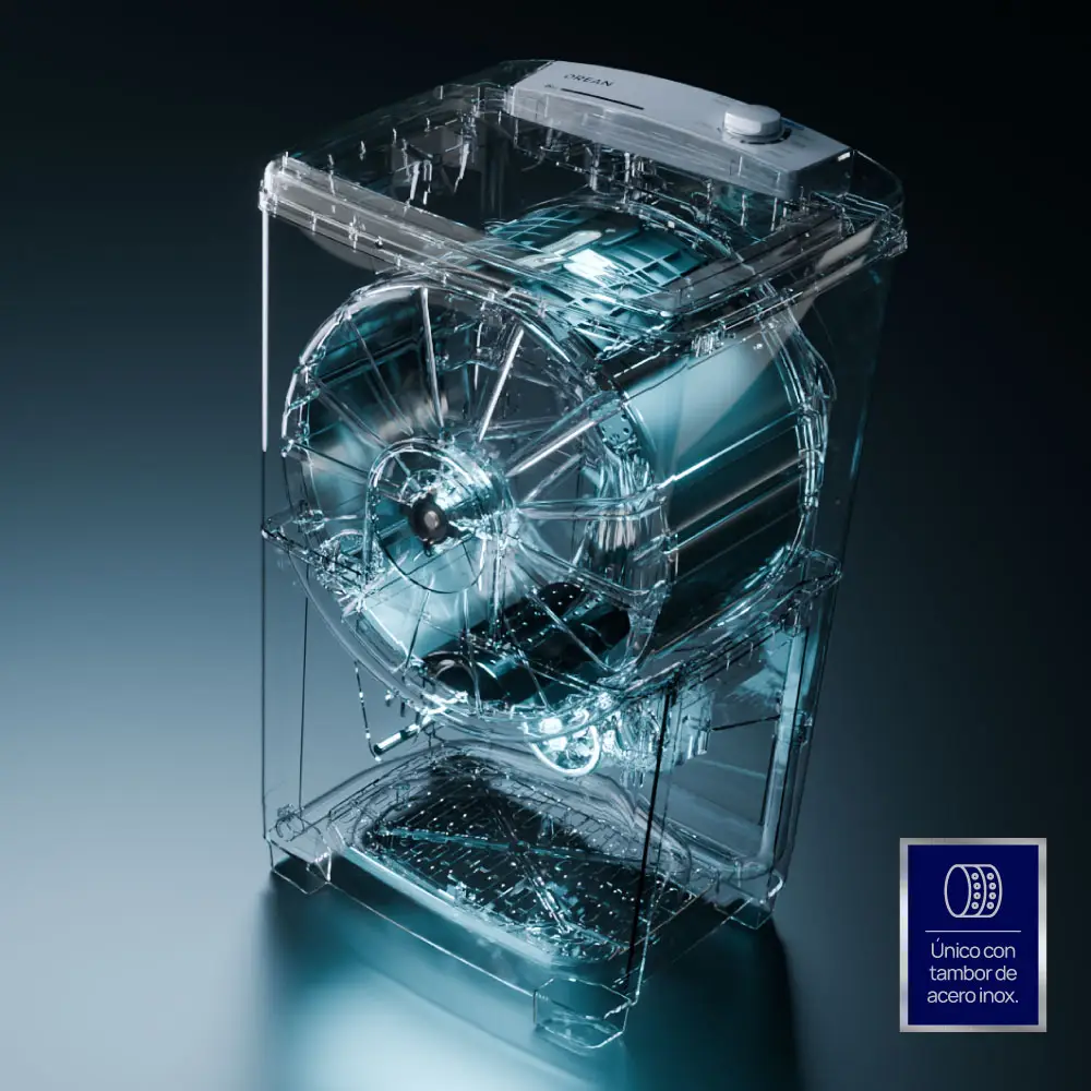 - CON TAMBOR DE ACERO INOXIDABLE!!! - mayor resistencia, durabilidad y facil de limpiar!