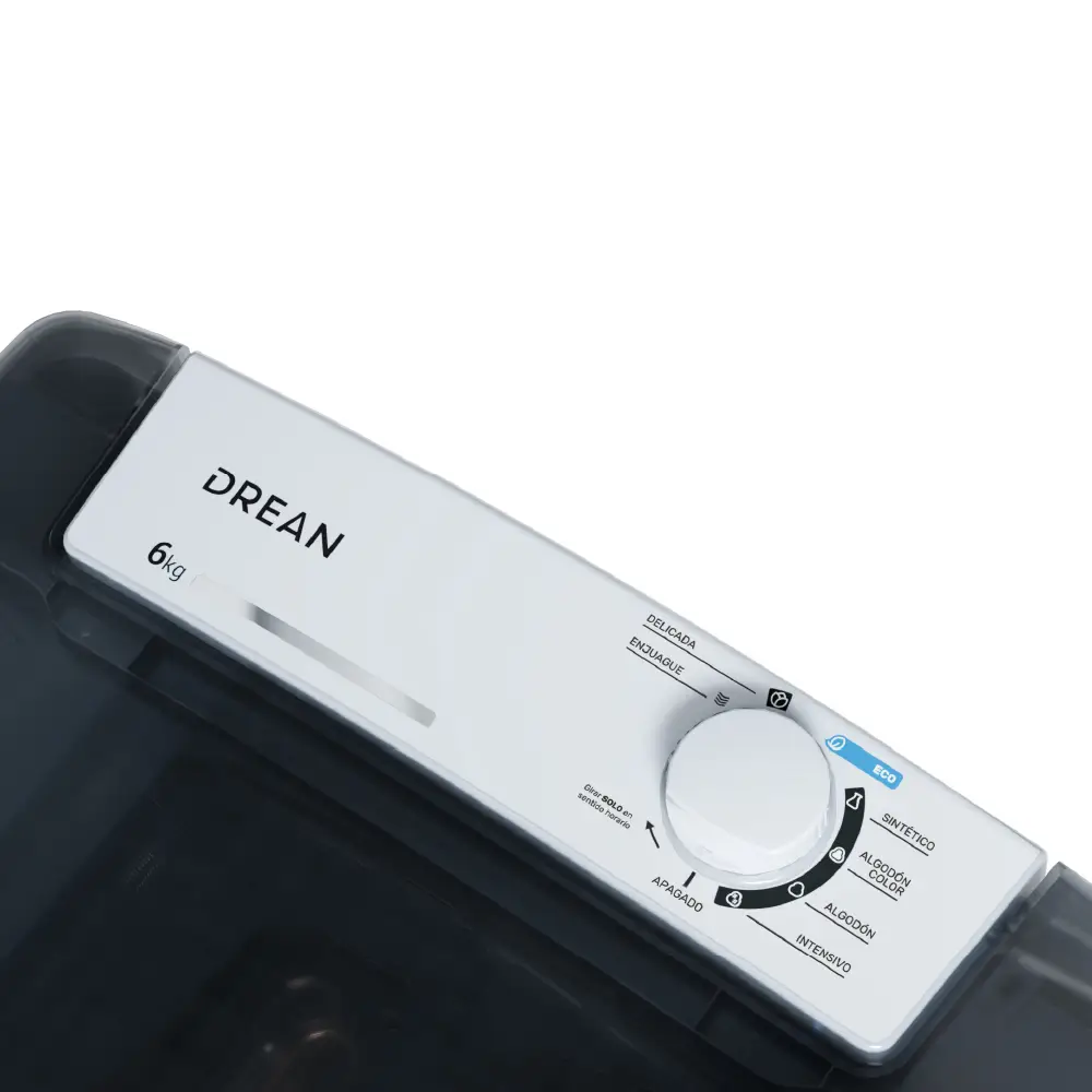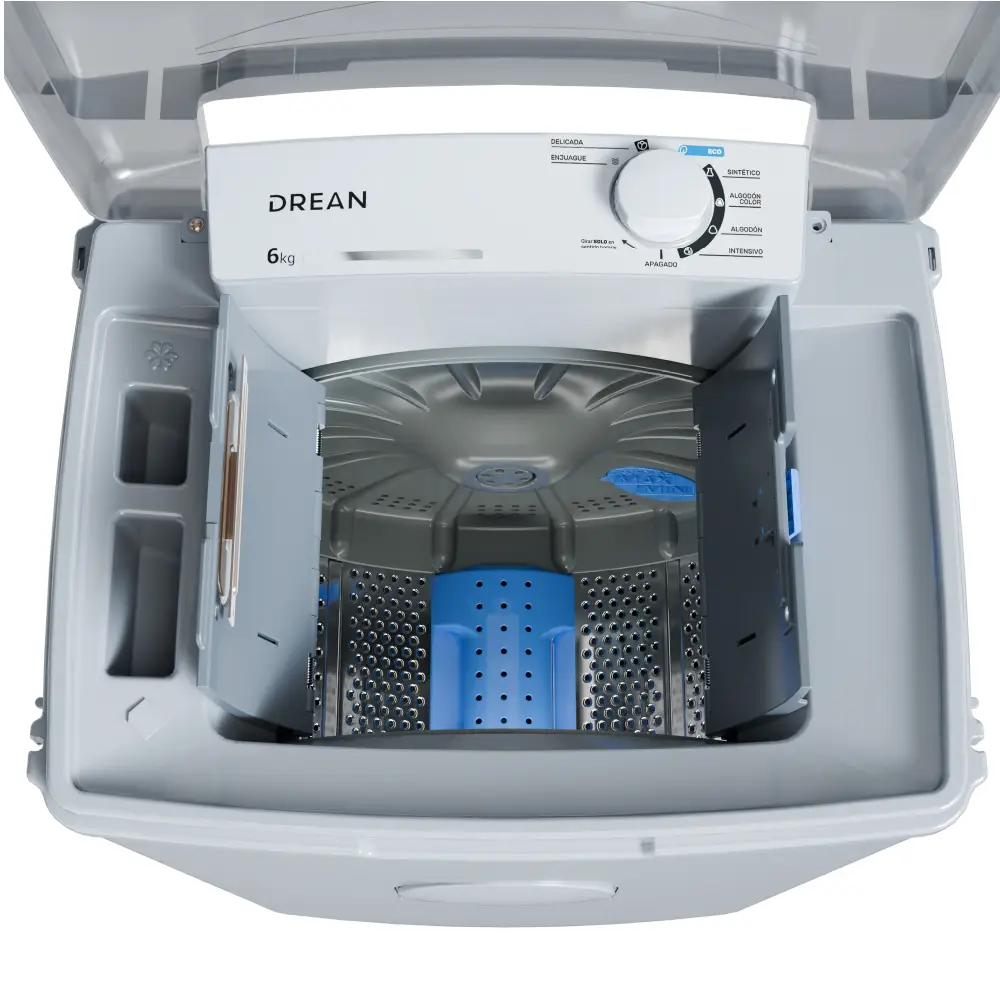 Lavarropas semiautomático de carga superior. Color blanco. Capacidad de lavado de 6 Kg.