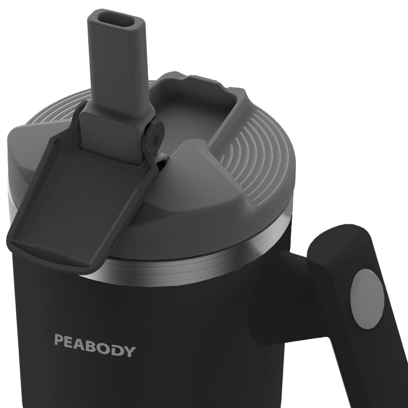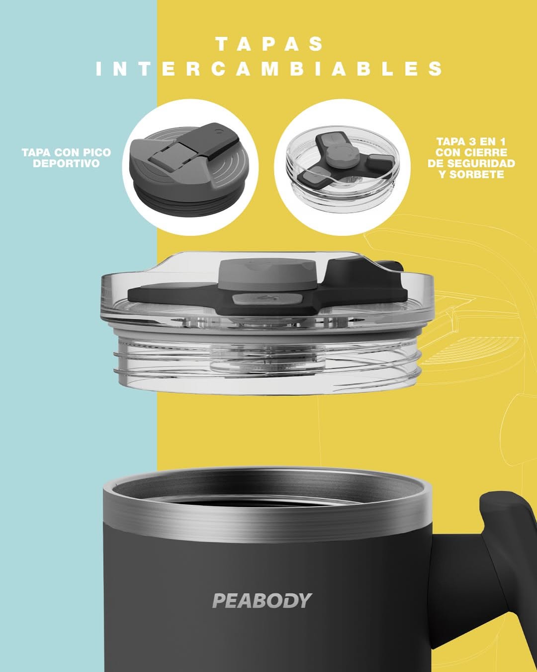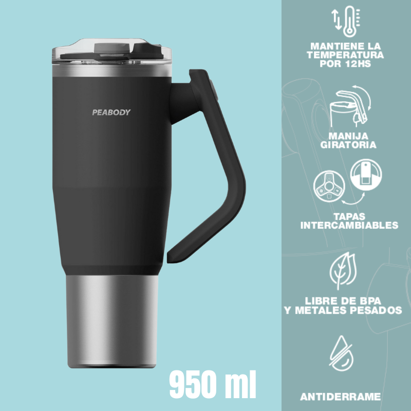 Con capacidad de 950 mL y doble tapa en color negro es el aliado perfecto para mantener tus bebidas a la temperatura ideal durante largos periodos, ya sea en la oficina, en casa o mientras te desplazas. Su amplia capacidad te permite transportar una generosa cantidad de café, té, agua o cualquier otra bebida favorita, siendo ideal tanto para jornadas largas como para viajes. Fabricado con materiales resistentes y de alta calidad, el vaso Peabody destaca por su durabilidad y fácil limpieza. La doble tapa ofrece mayor seguridad y evita derrames accidentales, asegurando que puedas llevarlo cómodamente sin preocuparte por fugas. Su diseño ergonómico y moderno en color negro combina fácilmente con cualquier estilo y lo convierte en un accesorio elegante y funcional, apto para cualquier ocasión. Además, su formato práctico permite sostenerlo con una sola mano, facilitando su uso diario. Es la opción ideal para quienes buscan practicidad, estilo y eficiencia en cada sorbo.