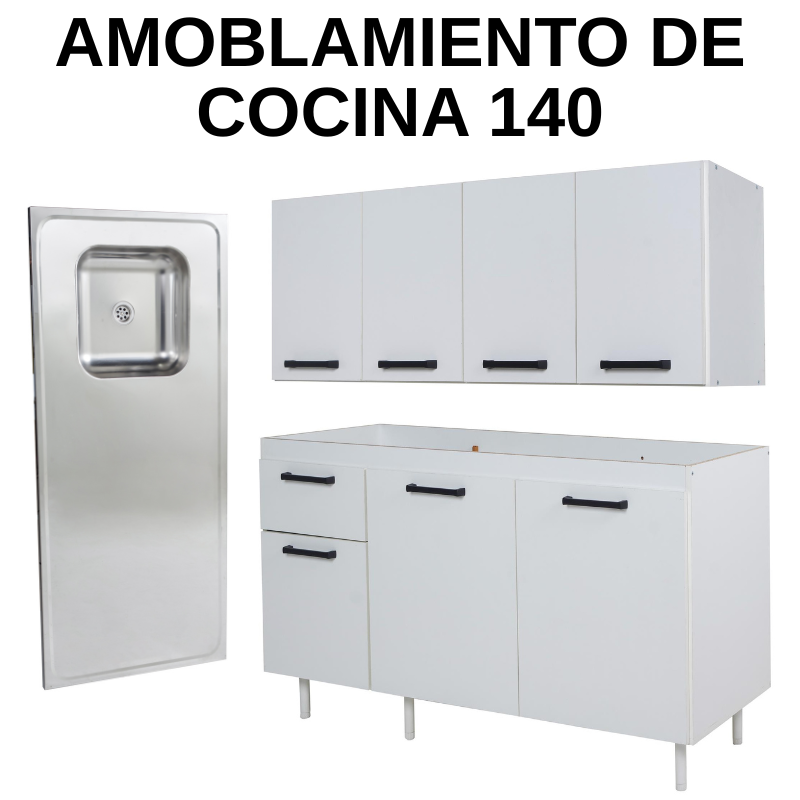 Amoblamiento completo 140: Alacena + Bajo + Mesada acero