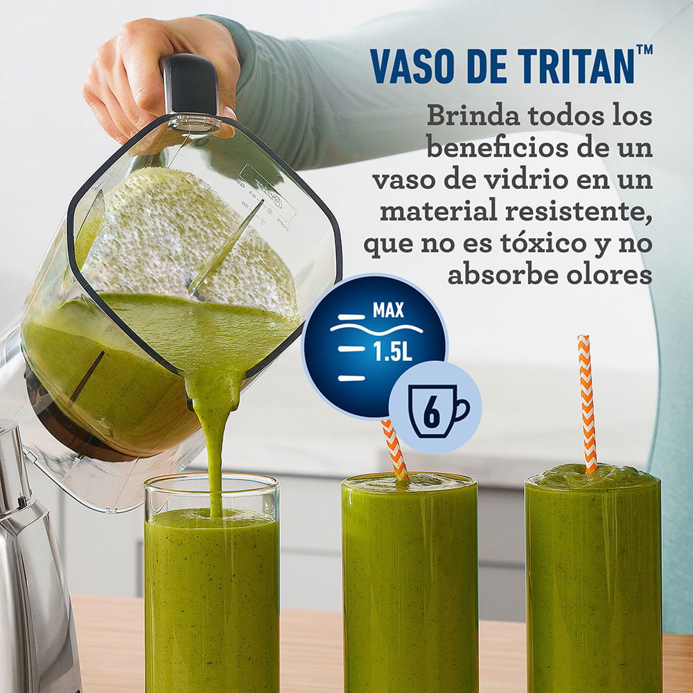 La potencia del motor, la eficiente cuchilla, el acople totalmetne metálico, los programas automáticos y la resistente jarra de Tritan™, hacen que la tarea de la licuadora sea una experiencia única y satisfactoria.