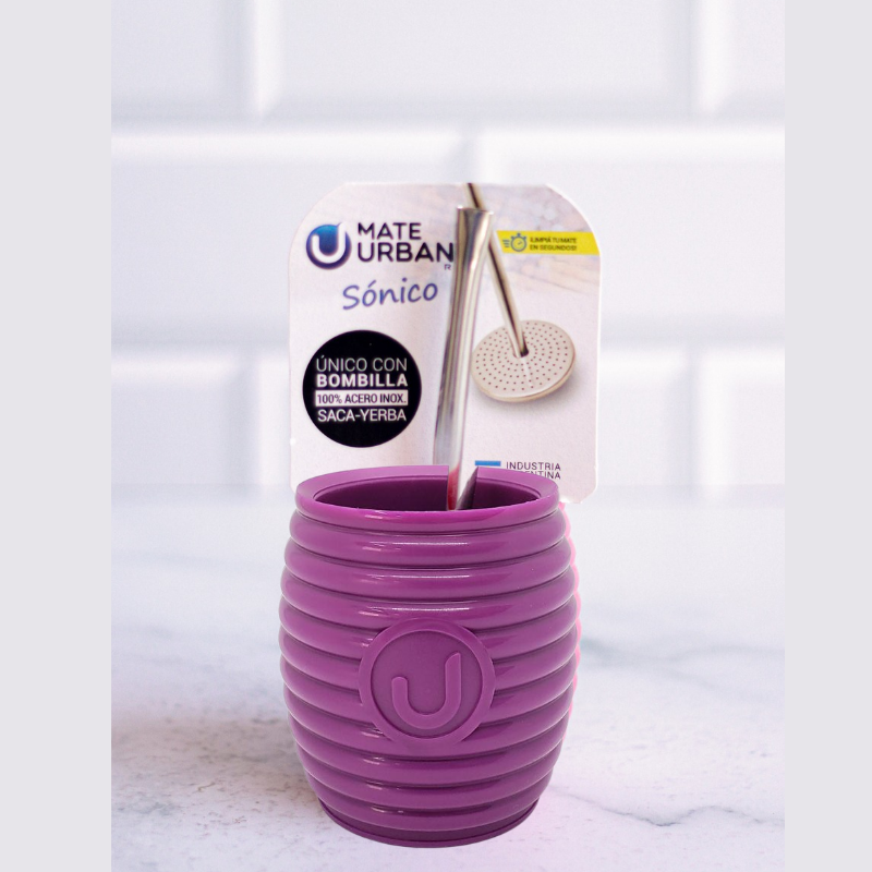Mate Urbano SONICO con Bombilla Saca Yerba color FUCSIA