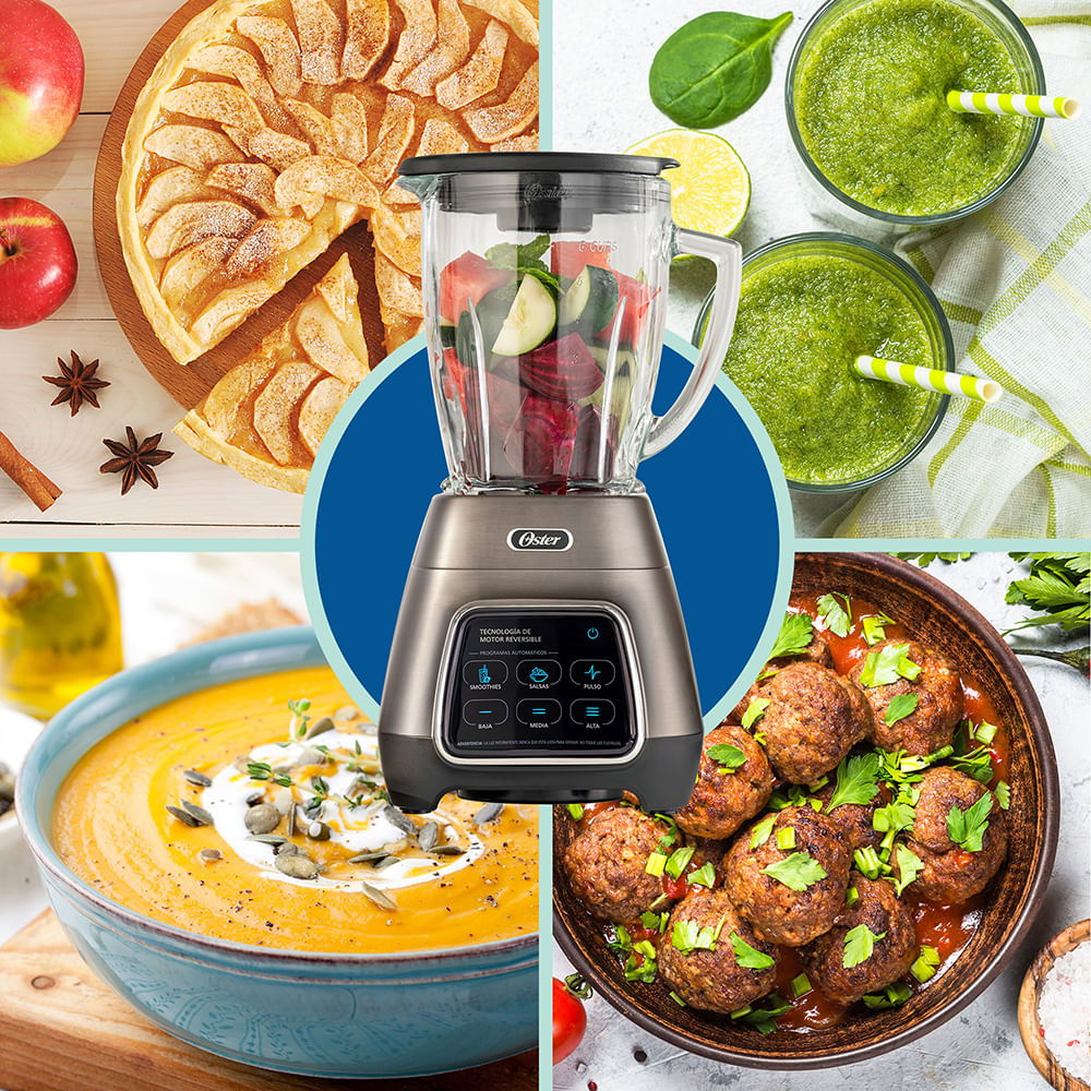 ¡Ya no tienes que dar más vueltas a la hora de cocinar! Gracias a la nueva licuadora Oster® con una moderna pantalla con controles de tecnología táctil que ofrece 2 programas automáticos para smoothies y salsas. También incluye 3 velocidades manuales y una función de “Pulso”. La pantalla táctil es practica y fácil de limpiar.