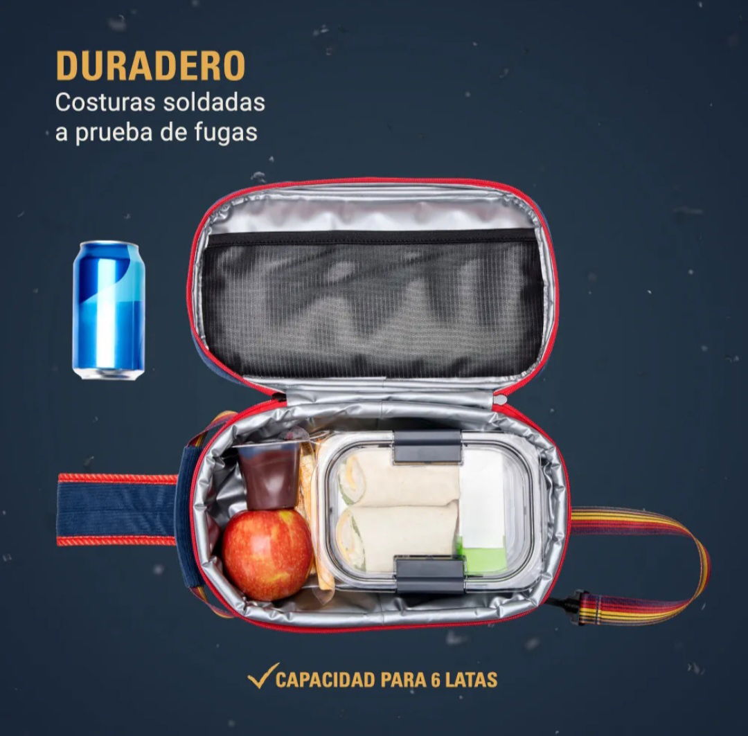 Fabricada con tejido de fibras de poliéster reciclado, combina sostenibilidad y durabilidad. Su aislamiento TempLock™ mantiene el frío por más de 12 horas, mientras que las costuras soldadas evitan cualquier filtración.