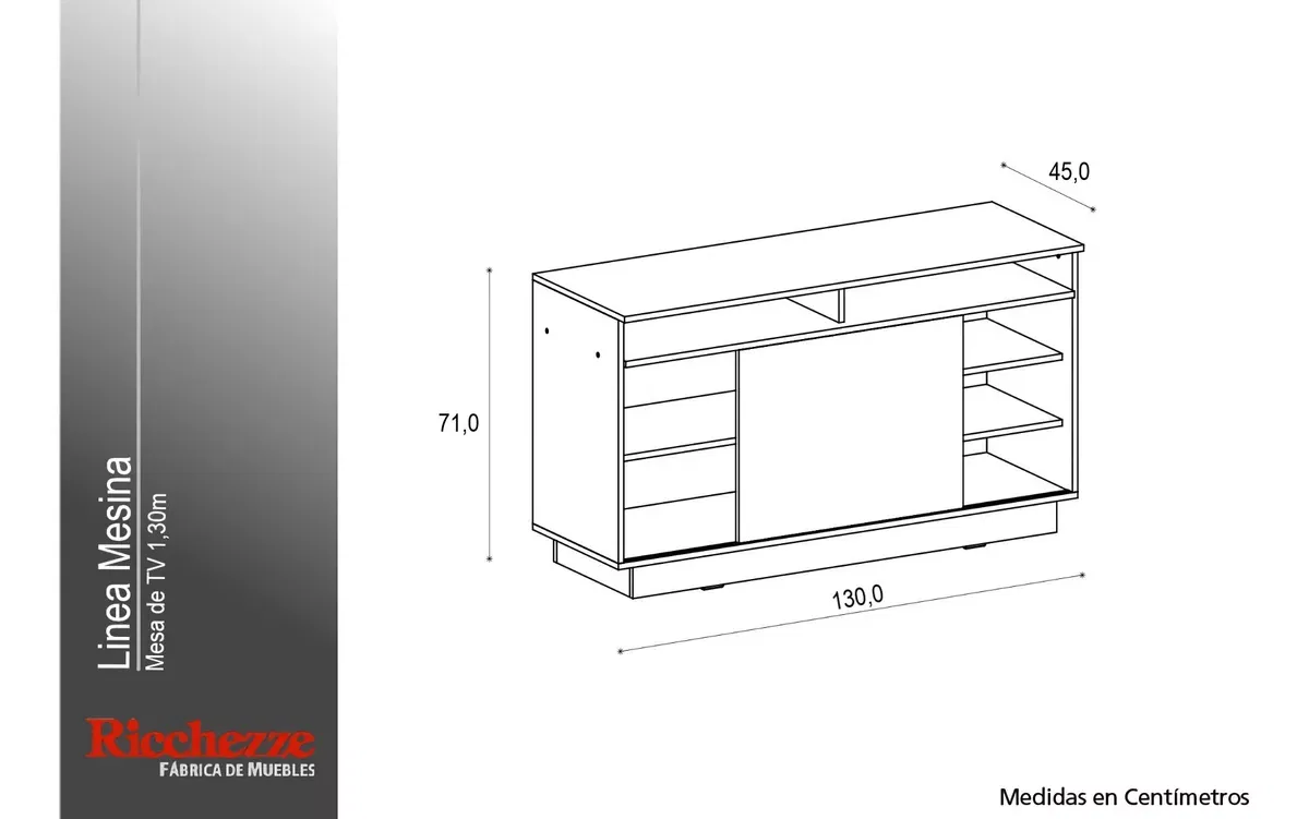La mesa Rack de TV Mesina de 1,30 metros es una opción elegante y funcional para organizar tu espacio de entretenimiento en el hogar. Con sus dimensiones compactas, es ideal para salas de estar de tamaño medio o pequeño.