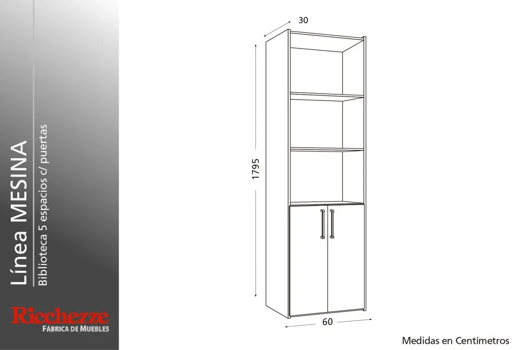 60 cm x 30 cm x 180 cm (Ancho x Profundidad x Altura)