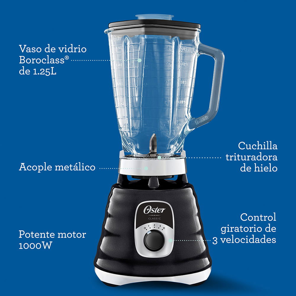 La renovada licuadora Oster® clásica es sinónimo de eficiencia y durabilidad. Su nuevo diseño moderno te brinda una mejor experiencia gracias a sus controles ergonómicos.