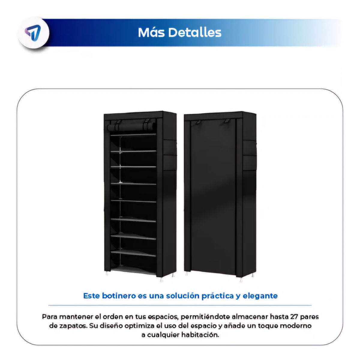 - Gran capacidad para alrededor de 27 pares de zapatos.