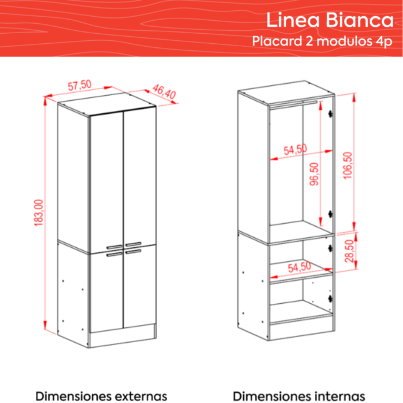 Placard en Modulos: MODULO II: 4 Puertas Ricchezze BIANCA - Color BLANCO