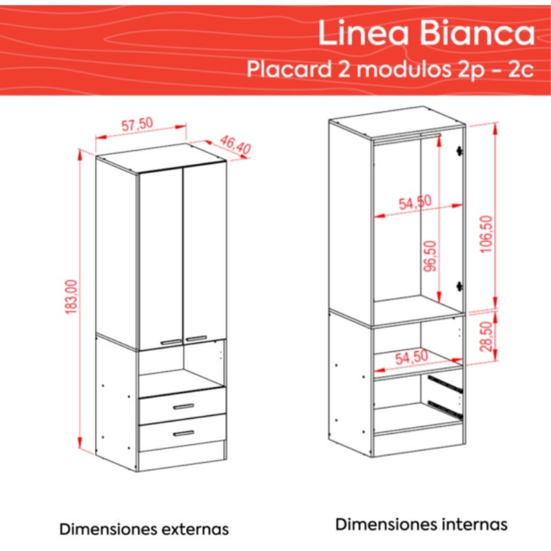 Ropero en 2 módulos Línea BIANCA