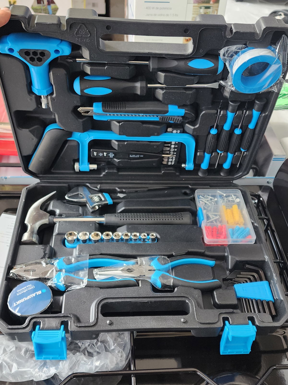 Cubre todas las necesidades básicas y mas específicas del Hogar incluyendo elementos para Múltiples Proósitos. Contiene 134 Piezas incluyendo Maletín para su Ordenamiento, Guardado y Transporte