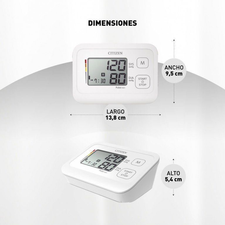 | Rango de medición | Presión: 0 a 300 mmHg | Pulsos: 40 a 180 pulsos/min |